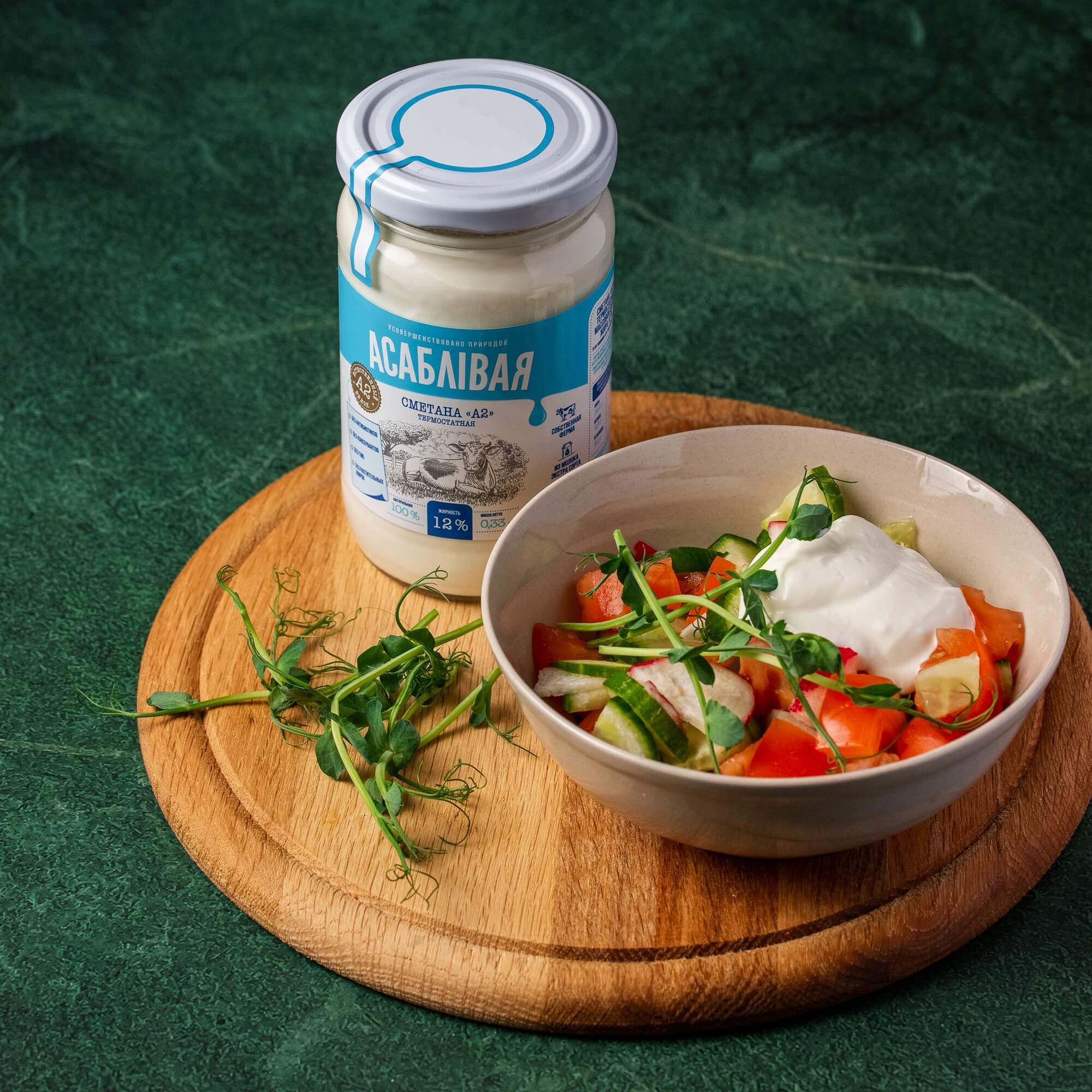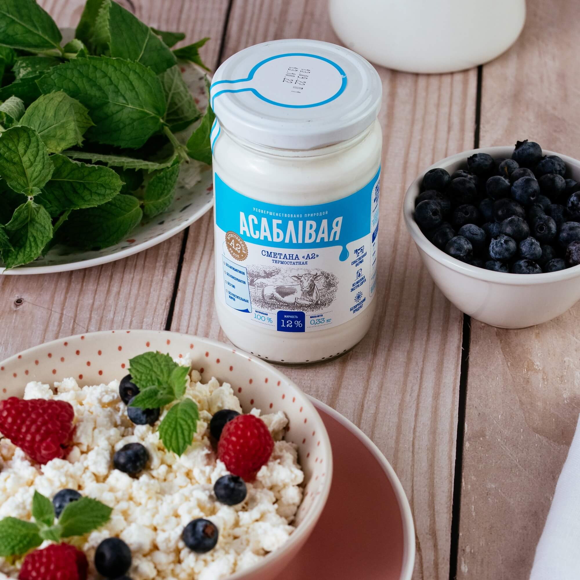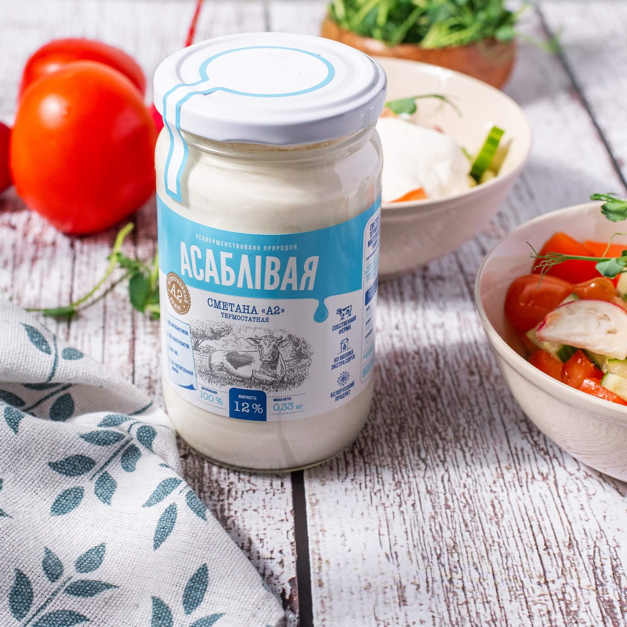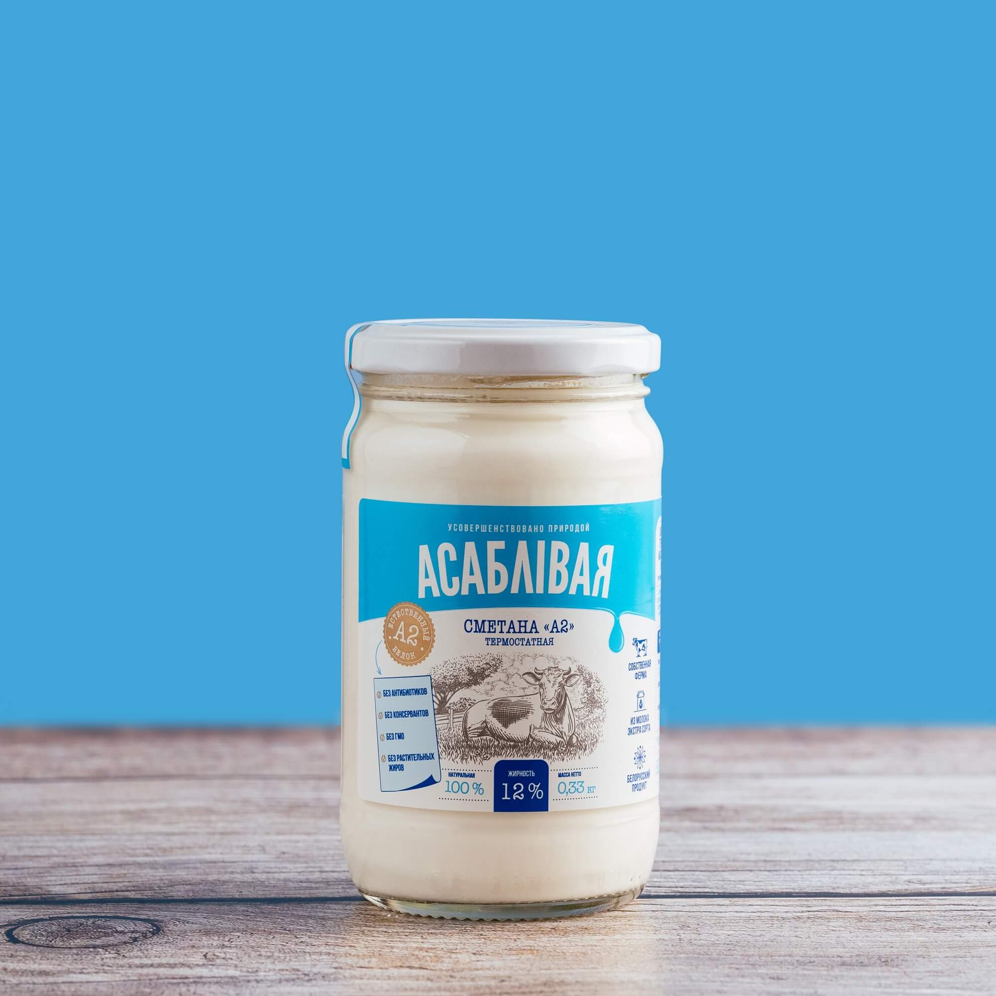 Возвращаясь к истокам производства сметаны, мы начали выпуск сметаны «А2» термостатной. В ней уникально все: начиная от сырья, способа производства и заканчивая упаковкой (стеклянная банка – одна из наиболее экологически чистых упаковок). Термостатный способ приготовления натуральной сметаны очень похож на старинную методику настаивания молока, при котором молоко помещали в глиняные горшки, затем медленно томили в печи при изменяющейся температуре на протяжении весьма длительного времени. В условиях развитых технологий деревенскую печь заменили специальными термостатными камерами. Требуемая температура в данных камерах выдерживается с точностью до десятых долей градуса в течение всего процесса сквашивания. Густая, плотная, структура и нежный вкус отличные качества сметаны А2, приготовленной термостатным методом.